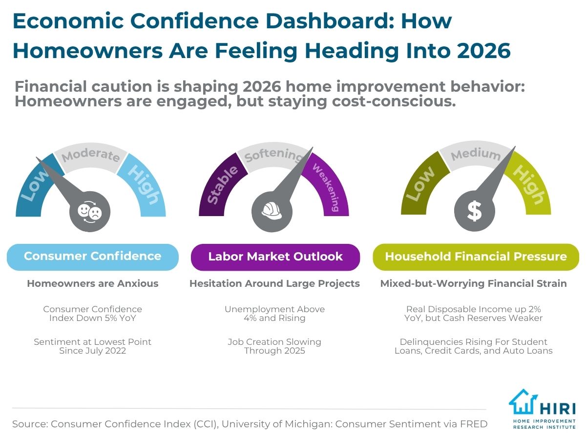 Homeowners in the United States are currently in a sensitive position as 2025 comes to a close and they prepare for the upcoming year. They face significant concerns over personal finances and rising costs, although there is less worry about broader trends, such as inflation, unemployment, and the political environment, based on our research.Homeowners show a cautiously engaged mindset. Strong intent persists with planned activity concentrated in maintenance projects.