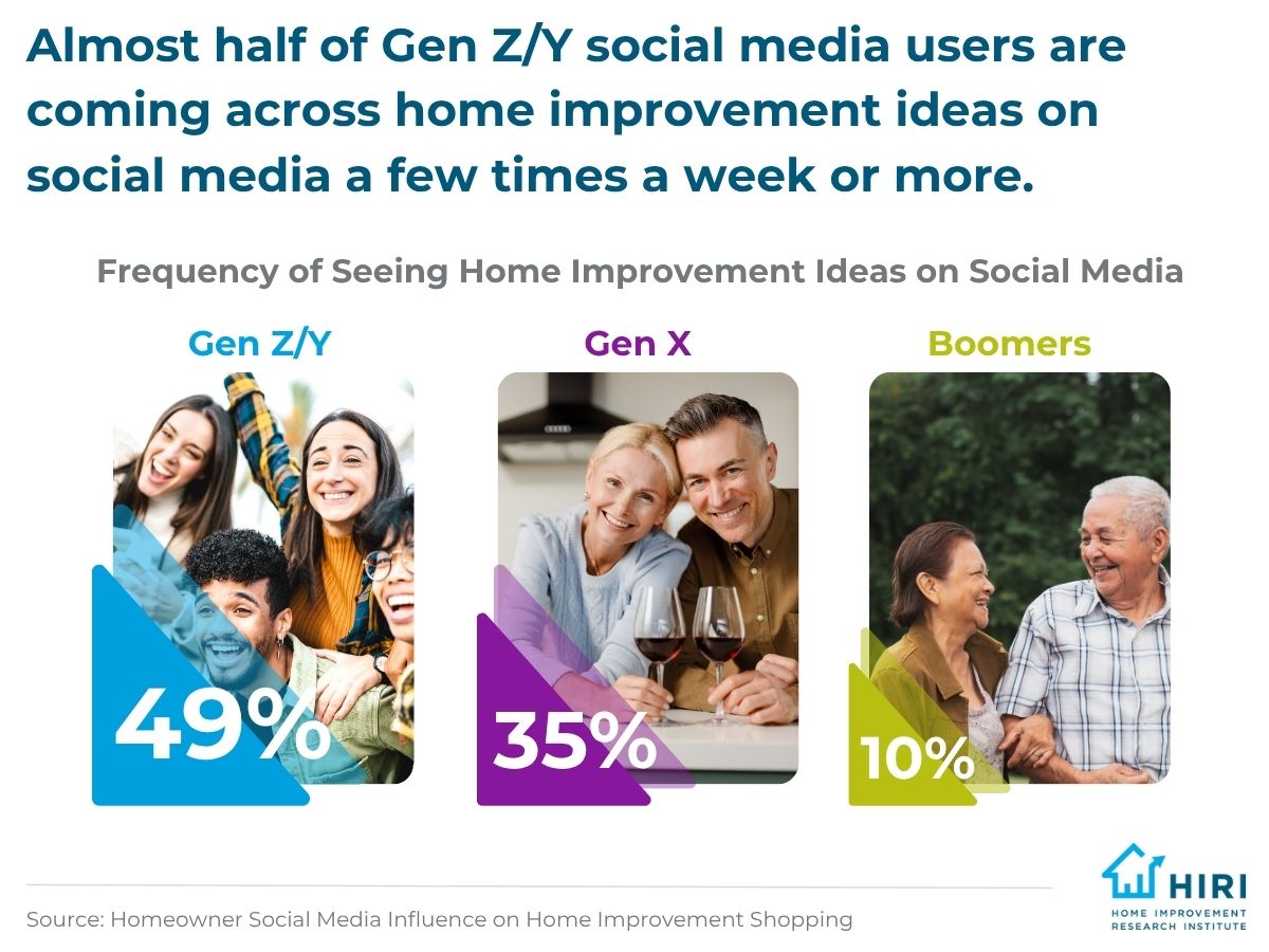 According to our 2025 Homeowner Social Media Influence on Home Improvement Shopping study, social media is seen as a resource that offers a strong spark for inspiration and project starts, especially among the Gen Z/Y audience. These users are the most engaged in online communities, valuing advice from professionals and relatable peers alike. Online communities build confidence and encourage more ambitious projects, especially for younger homeowners. Our research shows that for more than half, social media content has been the impetus for starting or accelerating a project, and 40% have purchased a home improvement product directly through social media, which means there is value in cultivating communities targeted at these age groups.