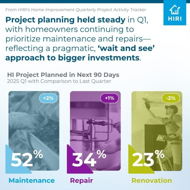 Just 1 in 3 homeowners hit pause on a home project in Q1—down from recent quarters